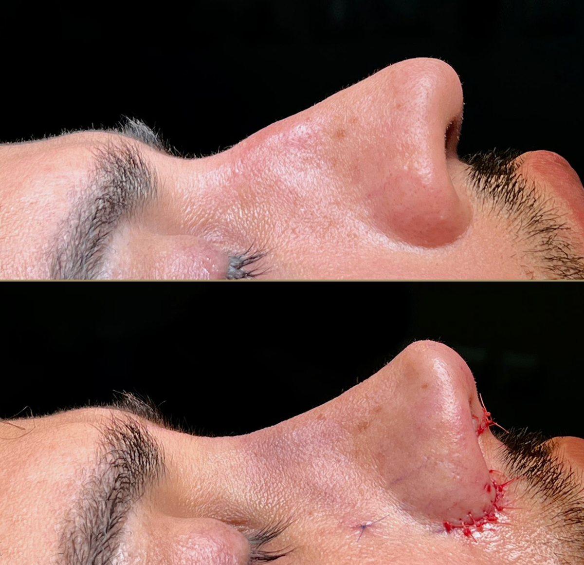 Finalizada la remodelación, la piel se adapta a la nueva estructura y se cierran las incisiones con suturas finas. Se coloca una férula externa y, en algunos casos, tapones nasales internos para estabilizar y reducir el sangrado.